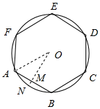 分析 画出平面图,连接OA,作OM⊥AB,垂足为N,交⊙O于M,由正六边形的性质得出OA、AM,MN=x,求出OM的长,即可得出结果.