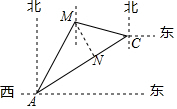 ∴MC=$\sqrt{M{N}^{2}+N{C}^{2}}=\sqrt{2}a$=$\sqrt{2}(10\sqrt{6}-10\sqrt{2})$=$20\sqrt{3}-20$≈20×1.7-20=14(海里),