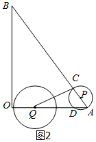 分析 (1)由题意知CD⊥OA,所以△ACD∽△ABO,利用对应边的比求出AD的长度,若Q与D重合时,则,AD+OQ=OA,列出方程即可求出t的值;