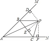 解:如图,过点P作PD⊥AM于D,PE⊥BC于E,PF⊥AN于F,