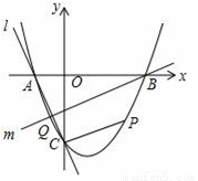 (3)直线l经过A、C两点,点Q在抛物线位于y轴左侧的部分上运动,直线m经过点B和点Q,是否存在直线m,使得直线l、m与x轴围成的三角形和直线l、m与y轴围成的三角形相似?若存在,求出直线m的解析式,若不存在,请说明理由.