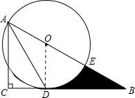 (2)①根据含有30°角的直角三角形的性质得出OB=2OD=2r,AB=2AC=3r,从而求得半径r的值;②根据S阴影=S△BOD-S扇形DOE求得即可.