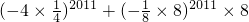 (2)(-4)2011×0.252011+(-0.125)2011×82012