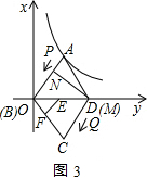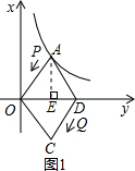 Èçͼ£¬½«ÁâÐÎABCD·ÅÔÚÖ±½Ç×ø±êϵÖУ¬Ê¹µÃµãBÓëÔµãÖØºÏ£¬¶Ô½ÇÏßBDÔÚxÖáÉÏ£¬µãAÇ¡ºÃÔÚ·´±ÈÀýº¯Êýy=