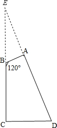 分析 作DA和CB的延长线交于E,先由∠ABC=120°得到∠ABE=60°,则∠E=30°,在△ABE中,根据含30度的直角三角形得到EB=2AB=4,AE=$\sqrt{3}$AB=2$\sqrt{3}$,则ED=EA+AD=20+2$\sqrt{3}$,再在Rt△ECD中计算出CE=$\frac{\sqrt{3}}{2}$ED=10$\sqrt{3}$+3,然后根据线段的和差关系即可求得BC的长.
