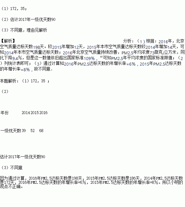 £¨3£©Ð¡Ã÷´Ó±¨µÀÖз¢ÏÖ¡°2016Äê1ÔÂÖÁ8Ôµף¬±±¾©È«ÊÐPM 2.5Ũ¶Èͬ±ÈϽµ12.5£¥£¬¿ÕÆøÖÊÁ¿´ï±êÌìÊý½ÏÈ¥ÄêͬÆÚÔö¼Ó19Ì죬¿ÕÆøÖØÎÛȾÌìÊýͬ±È¼õÉÙ5Ì족£¬ËûÓÉ´ËÍÆ¶Ï¡°2016ÄêÈ«ÄêµÄPM2.5´ï±êÌìÊýµÄÄêÔö³¤Âʽ«±È2015ÄêÈ«ÄêµÄPM2.5´ï±êÌìÊýµÄÄêÔö³¤ÂʳöÏÖ´ó·ùÔö³¤¡±£¬ÄãͬÒâËûµÄ½áÂÛÂð?²¢ËµÃ÷ÄãµÄÀíÓÉ¡£
