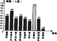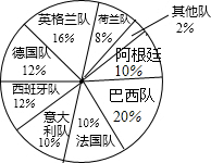 (2)请你在图9-①中补全频数分布直方图,在图9-②中分别把“阿根廷队”和“巴西队”所对应的扇形图表示出来.