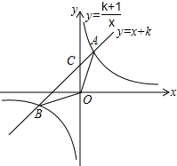解:(1)当k=2时,直线解析式为y=x+2,双曲线解析式为$y=\frac{3}{x}$