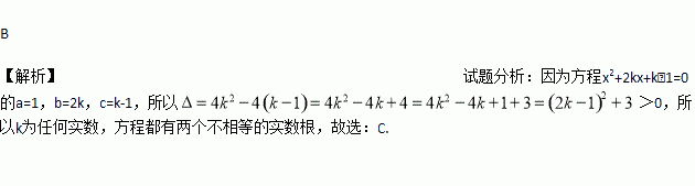 B. k为任何实数,方程都有两个不相等的实数根
