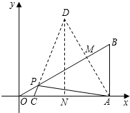 解答 解:作A关于OB的对称点D,连接CD交OB于P,连接AP,过D作DN⊥OA于N,