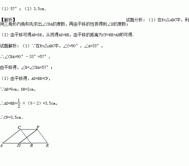 如图,在.△ABC中,∠C=90°,∠A=33°,将△ABC沿AB方向向右平移得到△DEF.