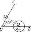 精英家教网如图,∠ACB=60°,半径为1cm的⊙O切BC于点C,若将⊙O在CB上向右滚动,则当滚动到⊙O与CA也相切时,圆心O移动的水平距离是(  )