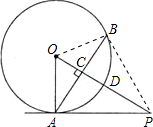 点评:本题考查了圆的切线性质,及三角函数的定义及特殊角的三角函数值.此题通过作辅助线OB、PB证得PB是⊙O的切线.