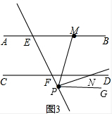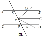 (2)过P点作PG∥AB∥CD,再根据平行线的性质得出∠MPN=∠PMA+∠PNC即可;