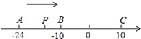 已知数轴上有A、B、C三个点,分别表示有理数-24,-10,10,动点P从A出发,以每秒1个单位的速度向终点C移动,设移动时间为t秒.