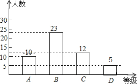 D等的人数为:50×10%=5,如图:![]()