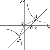 (2)根据△AOB的面积=S△AOC+S△BOC求解;