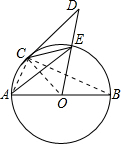 分析:连接OC,BC,AC,由切线的性质得OC⊥CD,∠D+∠COD=90°,根据直径所对的圆周角等于等于90°,∠CAB+∠B=90°,由同弧所对的圆周角相等,得出∠AEC=∠B,再根据