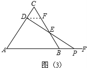 (3)作DF∥AB,易证∠EDF=∠BPE和DF=BP,即可证明△DEF≌△PEB,可得DE=PE.
