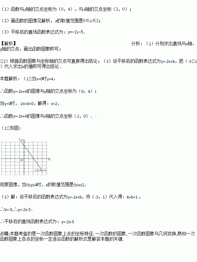 (1)求此函数图像与x轴、y轴的交点坐标;