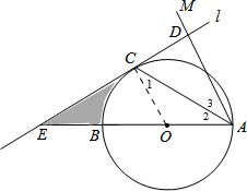 (2)利用三角形外角性质可得到∠EOC=60°,而OC⊥CD,则∠OCE=90°,在Rt△OCE中利用∠EOC的正切可计算出CE=3$\sqrt{3}$,然后三角形面积公式和扇形面积公式,利用S阴影部分=S△OOE-S扇形COB进行计算即可.