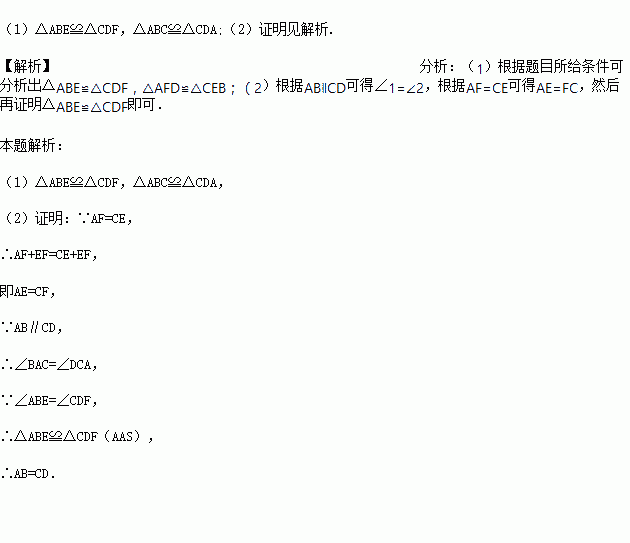 如图,已知点A、F、E、C在同一直线上,AB∥CD,∠ABE=∠CDF,AF=CE.