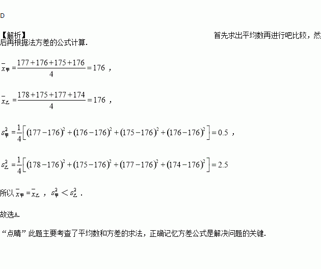 甲组 | 176 | 177 | 175 | 176 |