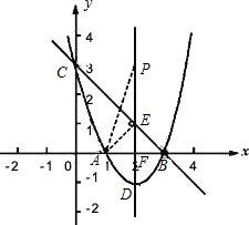 (4)根据(2)得出的抛物线的解析式可求出抛物线的对称轴的解析式.如果设抛物线交BC于E,交x轴于F点.根据对称轴的解析式与BC所在直线的解析式不难得出E点的坐标为(2,1),此时AF=FE=FB,如果连接AE,那么三角形AEB就是个等腰直角三角形.于是三角形AEC也是直角三角形,那么∠ACE和∠APF的正切值就应该相等(已知∠ACE=∠APD),那么可得出的等量关系为AE:CE=AF:PF,据此可求出PF的长,也就能得出P点的坐标.