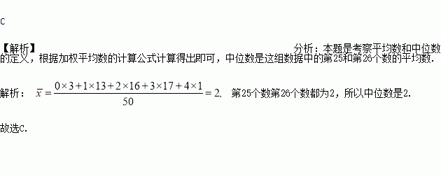 那么这50名学生读书册数的平均数与中位数分别为( )