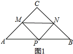 分析 (1)①根据折叠的性质和MN∥AB得到MA=MP,CM=PM,即可得到AM=MC;
