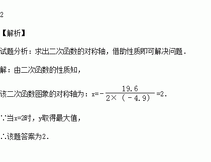 (2015秋•高密市期末)一个足球从地面上被踢出,它距地面高度y(米)可以用二次函数y=﹣4.9x2+19.6x刻画,其中x(秒)表示足球被踢出后经过的时间.则足球被踢出后到离开地面达到最高点所用的时间是 秒.