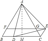 (3)过A作AM⊥BC交BC于M,可得M为BC的中点,即BM=CM=4,在直角三角形ABM中,利用勾股定理求出AM的长,而MD=4-x,在直角三角形ADM中,利用勾股定理列出关于x的方程,求出方程的解得到x的值,代入(2)的解析式中求出y的值,即为FG的长.