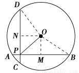 如图,在半径为5的⊙O中,AB、CD是互相垂直的两条弦,垂足为P,且AB=CD=8,则OP的长为 ( )