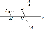 分析 根据两点之间线段最短,过A作关于直线a的对称点A′,过B作BD∥直线a,使BD=10mm,连接A′D交直线a于N,在直线a上截取NM=10mm,则四边形ABMN的周长最短.