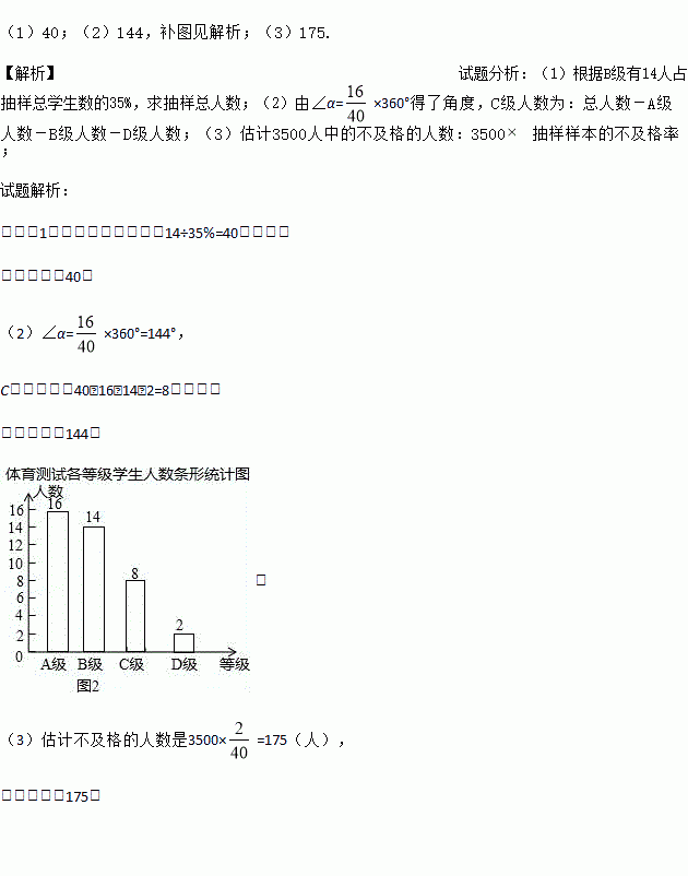 (3)该区九年级有学生3500名,如果全部参加这次体育科目测试,请估计不及格的人数为 .