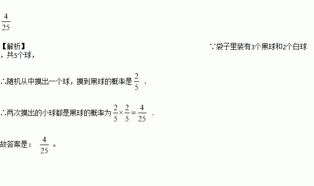 一个不透明的袋子中装有黑球两个,白球三个,这些小球除颜色外无其他区别,从袋子中随机摸出一个小球后,放回并摇匀,再随机摸出一个小球,则两次摸出的小球都是黑球的概率为______.