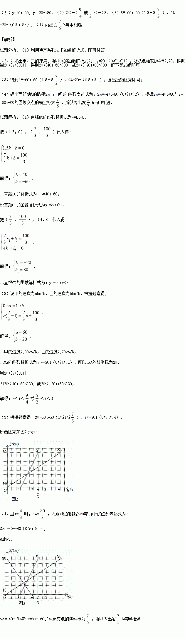 (4)丙骑摩托车与乙同时出发,从N地沿同一公路匀速前往M地,若丙经过