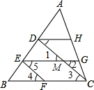 如图,DH∥GE∥BC,AC∥EF,那么与∠HDC相等的角有