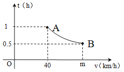 (km/h)满足反比例函数关系,其图象为如图所示的一段曲线,且端点为A(40,1)和B(m,0.5).