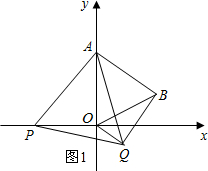 分析 如图1所示:先证明△APO≌△AQB(SAS),从而得到∠ABQ=∠AOP=90°,于是可知点Q的轨迹为一条经过点B且于AB垂直的线段,如图2所示先求得点Q与点Q′的坐标,最后利用两点之间的线段公式求得QQ′的长即可.