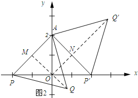 如图2所示:过点O作QM⊥PA,垂足为M,过点Q′作Q′N⊥AP′,垂足为N.![]()