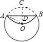 如图,将⊙O沿着弦AB翻折,劣弧恰好经过圆心O,若⊙O的半径为4,则弦AB的长度等于__ .