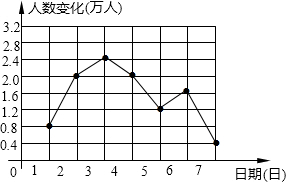 解答 解:1号人数为(a+0.8)万,2号人数为(a+2)万,3号人数为(a+2.4)万,4号人数为(a+2)万,5号人数为(a+1.2)万,6号人数为(a+1.6)万,7号人数为(a+0.4)万,