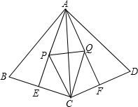 分析:等腰三角形三线合一,可得出∠AEC和∠AFC都是直角,这样用角的等量代换可证明∠FAC和∠PCA相等,可证明AQ∥PC,同理AP∥CQ,所以可先证明是平行四边形,然后根据邻边相等证明是菱形.