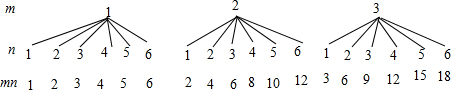 共18种情况,数字之积为6的情况数有3种,P(数字之积为6)=$\frac{3}{18}$=$\frac{1}{6}$.