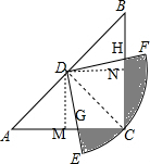 分析 作DM⊥AC于M,DN⊥BC于N,构造正方形DMCN,利用正方形和等腰直角三角形的性质,通过证明△DMG≌△DNH,把△DHN补到△DNG的位置,得到四边形DGCH的面积=正方形DMCN的面积,于是得到阴影部分的面积=扇形的面积-正方形DMCN的面积,即为定值.