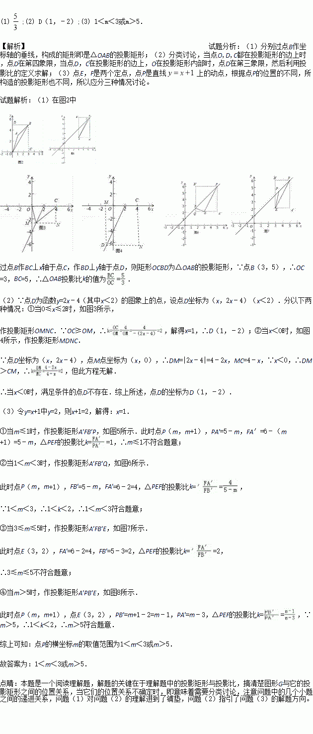 (1)如图2,若点A(1,3),B(3,5),则△OAB投影比k的值为 .