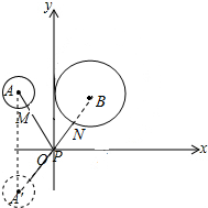 分析 作⊙A关于x轴的对称⊙A′,连接BA′分别交⊙A′和⊙B于M、N,交x轴于P,如图,根据两点之间线段最短得到此时PM+PN最小,再利用对称确定A′的坐标,接着利用两点间的距离公式计算出A′B的长,然后用A′B的长减去两个圆的半径即可得到MN的长,即得到PM+PN的最小值.