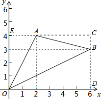 如图,三角形AOB中,A,B两点坐标分别为(2,4),(6,3),求三角形AOB面积.