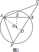 ②当AB=AP时,如图1,延长AO交PB于点D,过点O作OE⊥AB于点E,则AD⊥PB,AE=$\frac{1}{2}$AB=4,![]()